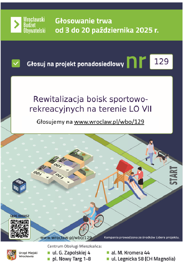 Głosowanie odbywa się elektronicznie na www.wroclaw.pl/wbo/129 i papierowo w Centrach Obsługi Mieszkańca.