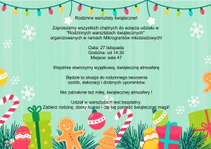 Zapraszamy wszystkich chętnych do wzięcia udziału w “Rodzinnych warsztatach świątecznych” organizowanych w ramach Mikrograntów młodzieżowych.