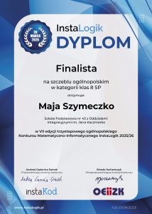 Z przyjemnością informujemy o osiągnięciach uczniów naszej szkoły w VII edycji ogólnopolskiego konkursu matematyczno-informatycznego InstaLogik, organizowanego przez InstaKod.